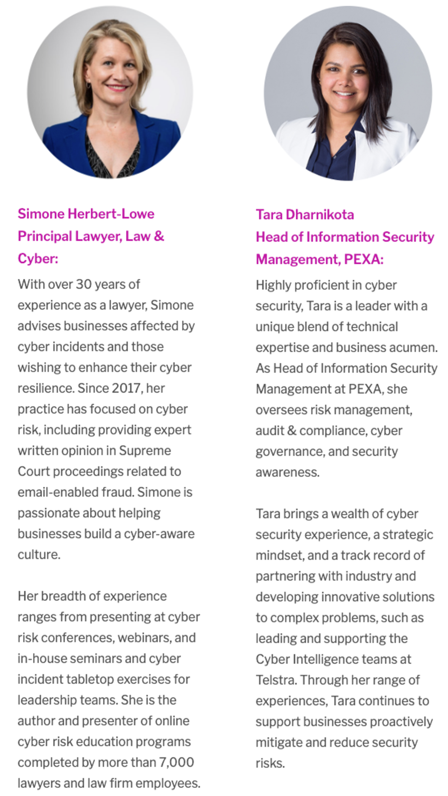 Join our live CPD event, "Cyber Security + AI: A new era for professional responsibilities" with hosts Simone Herbert-Lowe, Principal Lawyer & Director at Law & Cyber, and Tara Dharnikota, Head of Information Security Management at PEXA.